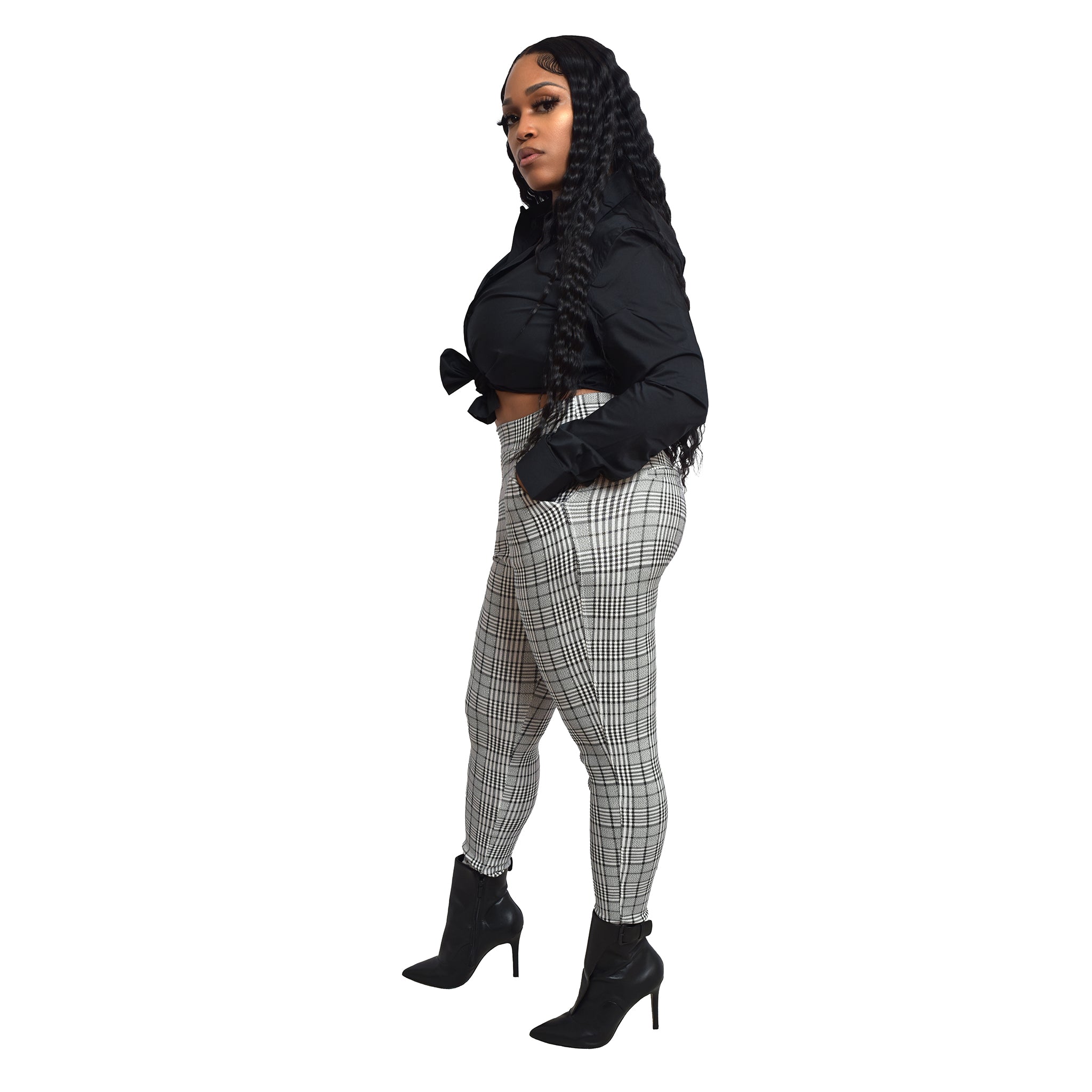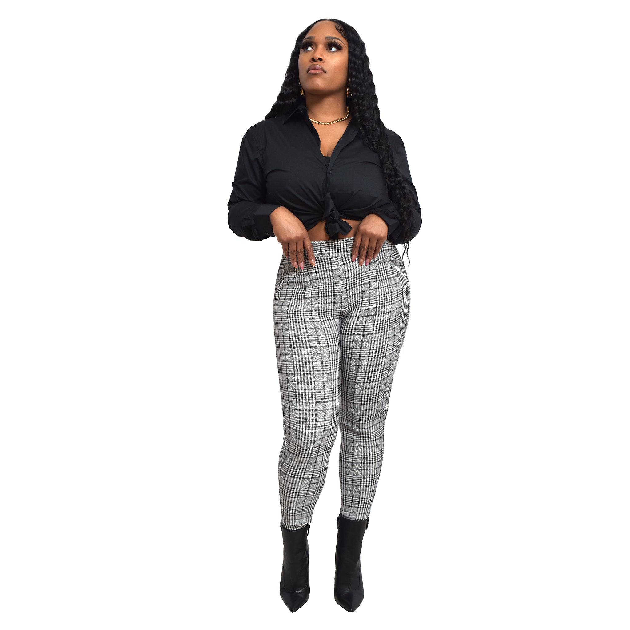 Elevate your everyday wardrobe with Line It Up jeggings from Conceited Avenue—a perfect blend of comfort and style. These black-and-white plaid jeggings feature a fitted, flattering design that hugs your curves in all the right places.